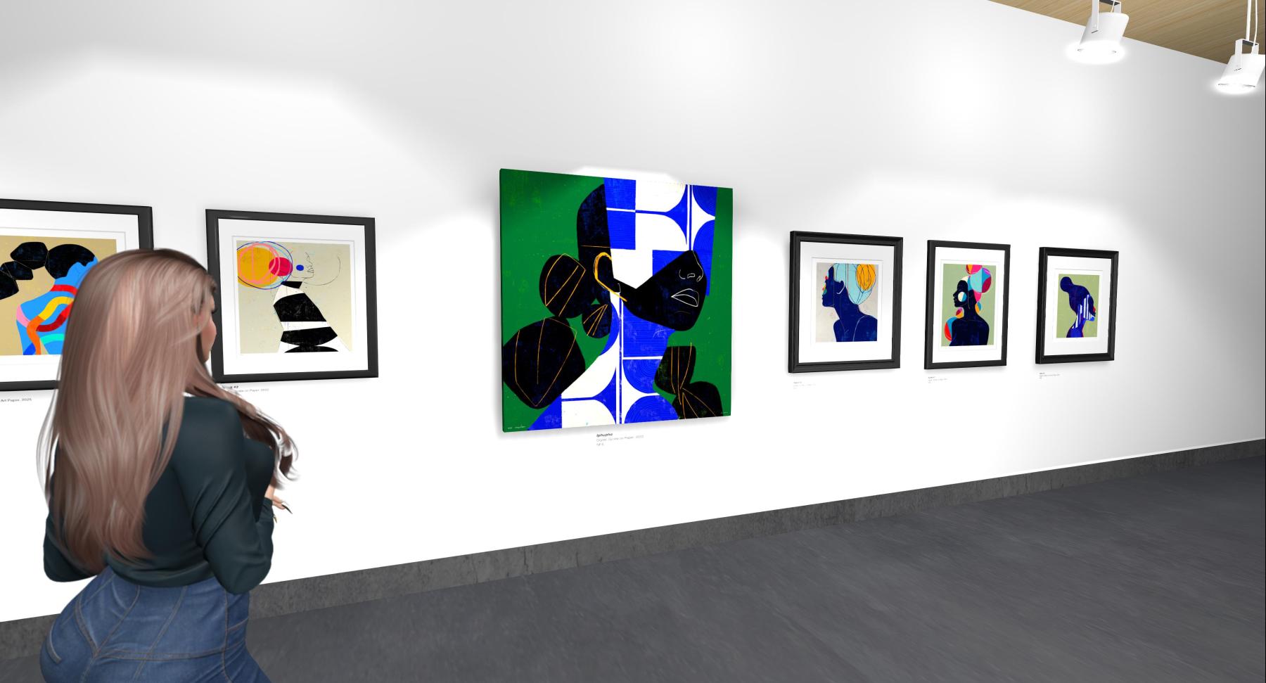 In mixed media, drawing, sculpture, linocut, acrylic, or oil on canvas/ wood, his characters encompass different ethnicities, with empowerment and gestural power. The highlighted line of the designs incorporates a simple color palette with great contrasts.